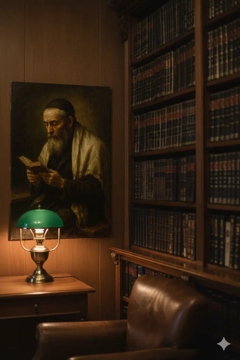 דיוקן מעורר יראה של יהודי מתפלל, עטוף בטלית כתפיים, באור זהוב ורך המדגיש כל קמט של חכמה וכל קו של שלווה. זו יצירה שנוגעת בלב — שקטה, עמוקה, ונושאת עמה ריח של זמן ותפילה. מושלמת לחלל ביתי או מוסדי המבקש השראה, רוח ותחושת מסורת.